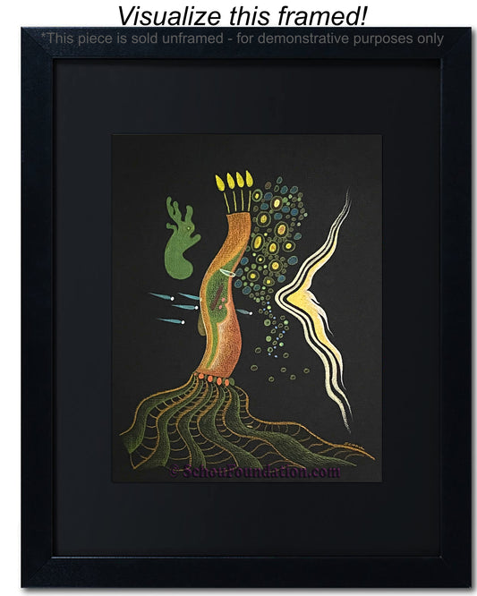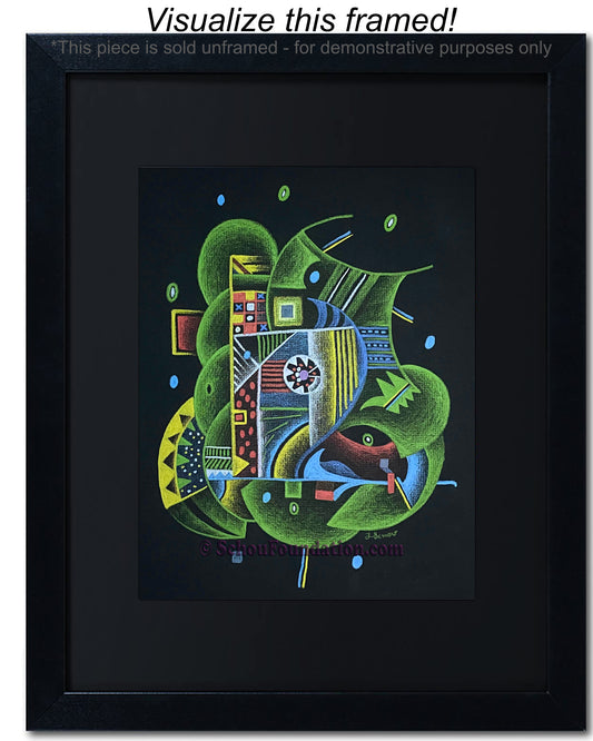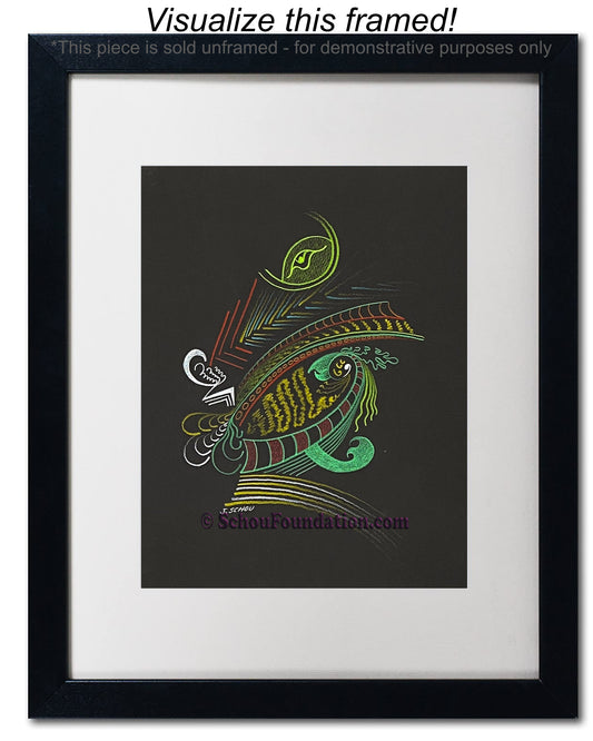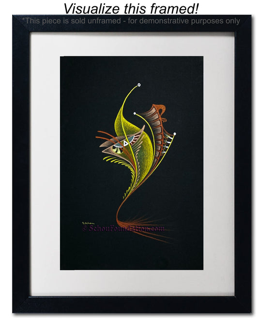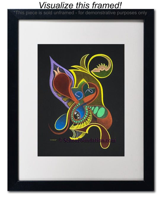 Early in his art career, John fell in love with the vibrant, high contrast color produced by wax pencils against black paper. He preferred to work with a rough tooth paper. The incredible beauty with black paper, albeit also a curse, is the unforgiving nature of an unexpected slide of hand. He took meticulous care to ensure his lines were razor sharp, and color choices were complimentary and striking. This series is by far his most extensive in terms of creativity and quantity produced.