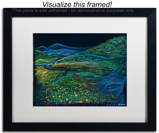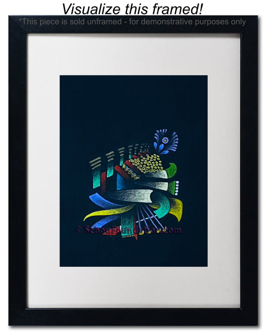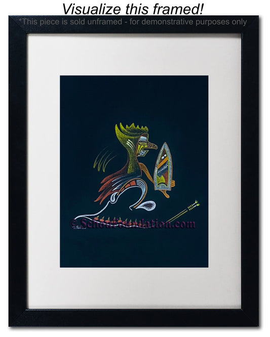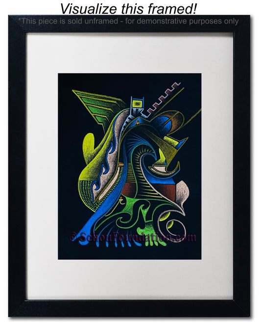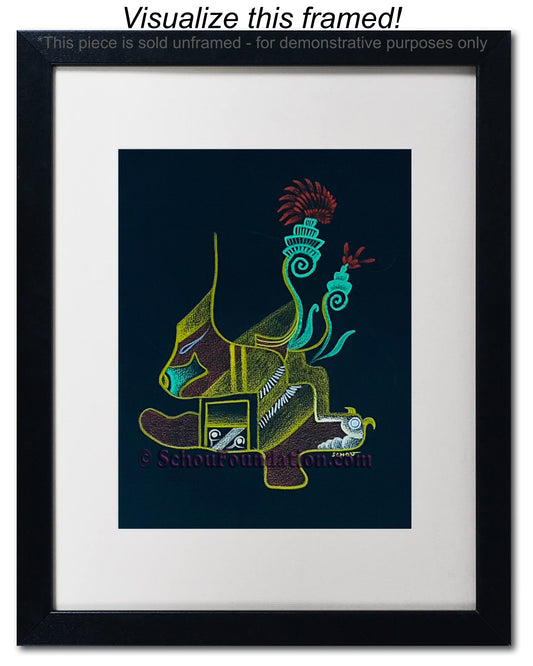 Early in his art career, John fell in love with the vibrant, high contrast color produced by wax pencils against black paper. He preferred to work with a rough tooth paper. The incredible beauty with black paper, albeit also a curse, is the unforgiving nature of an unexpected slide of hand. He took meticulous care to ensure his lines were razor sharp, and color choices were complimentary and striking. This series is by far his most extensive in terms of creativity and quantity produced.