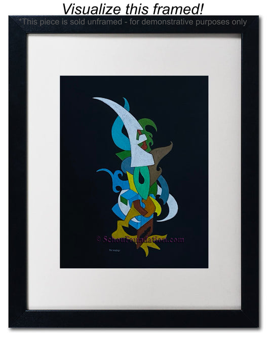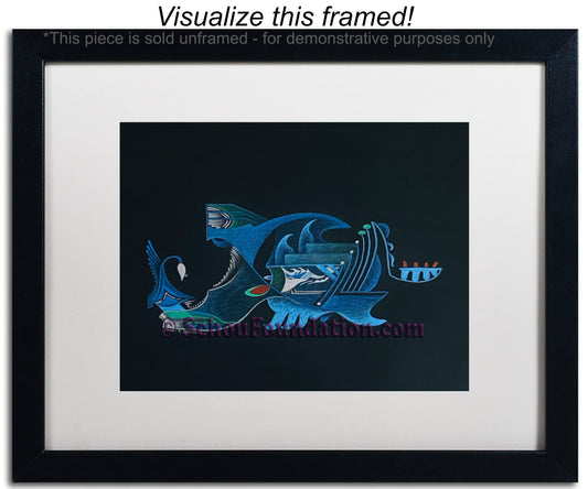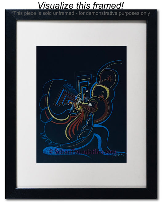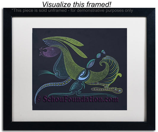Early in his art career, John fell in love with the vibrant, high contrast color produced by wax pencils against black paper. He preferred to work with a rough tooth paper. The incredible beauty with black paper, albeit also a curse, is the unforgiving nature of an unexpected slide of hand. He took meticulous care to ensure his lines were razor sharp, and color choices were complimentary and striking. This series is by far his most extensive in terms of creativity and quantity produced.