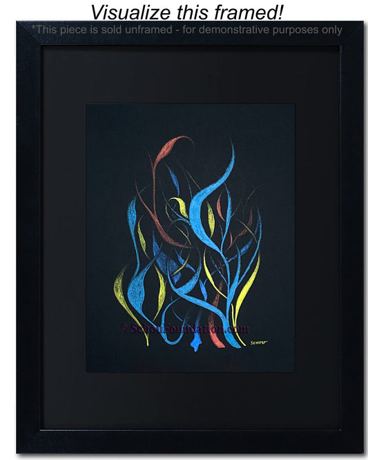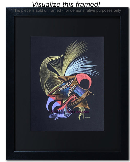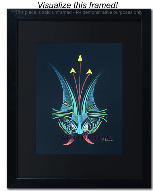 Early in his art career, John fell in love with the vibrant, high contrast color produced by wax pencils against black paper. He preferred to work with a rough tooth paper. The incredible beauty with black paper, albeit also a curse, is the unforgiving nature of an unexpected slide of hand. He took meticulous care to ensure his lines were razor sharp, and color choices were complimentary and striking. This series is by far his most extensive in terms of creativity and quantity produced.