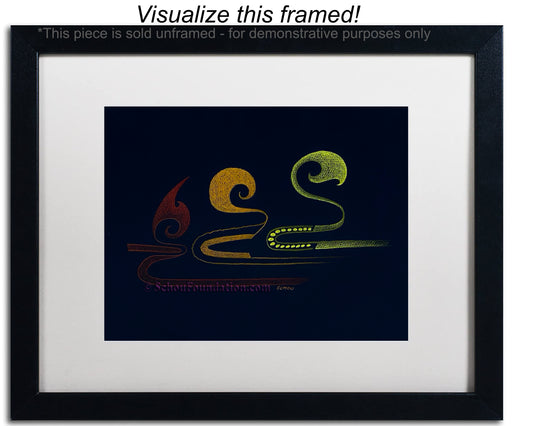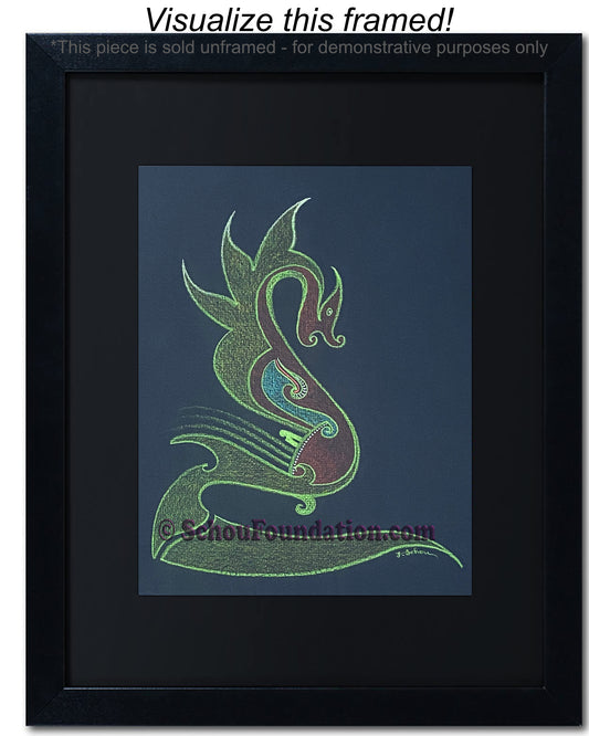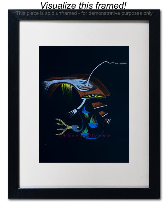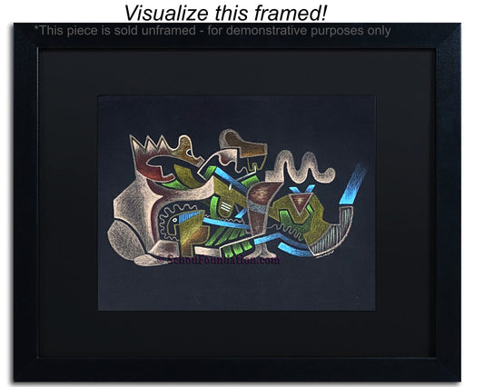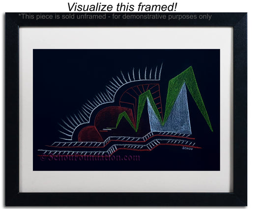 Early in his art career, John fell in love with the vibrant, high contrast color produced by wax pencils against black paper. He preferred to work with a rough tooth paper. The incredible beauty with black paper, albeit also a curse, is the unforgiving nature of an unexpected slide of hand. He took meticulous care to ensure his lines were razor sharp, and color choices were complimentary and striking. This series is by far his most extensive in terms of creativity and quantity produced.