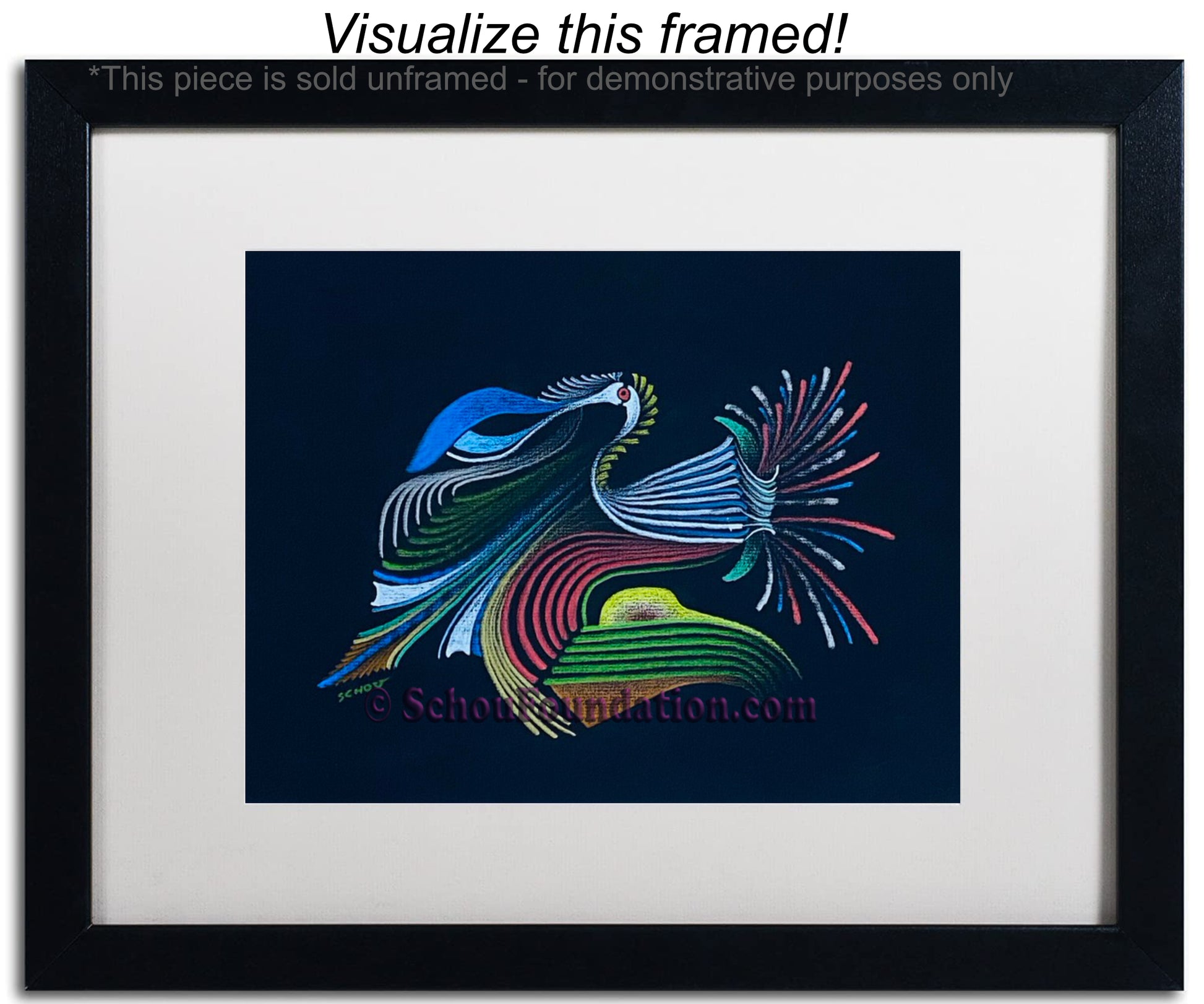 This complicated, vibrant original features Prismacolor wax pencil on heavy-tooth black paper, part of the Black Paper Series. Created by San Francisco artist John Schou, this artwork is signed and dated 4/1967.