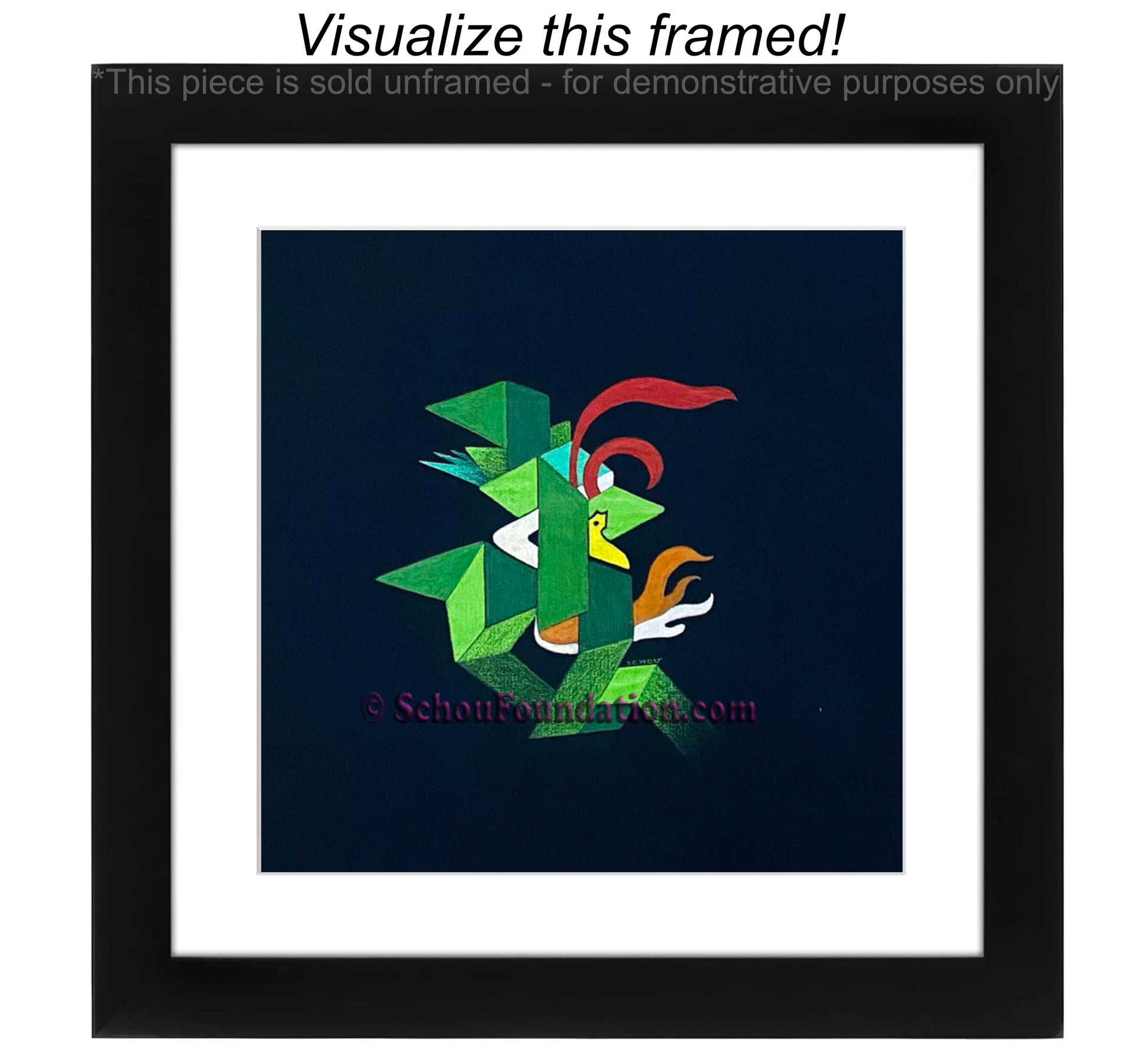 This complex colorful original features Prismacolor wax pencil on heavy-tooth black paper, part of the Black Paper Series. Created by San Francisco artist John Schou, this artwork is signed and undated, circa 1966-1968.