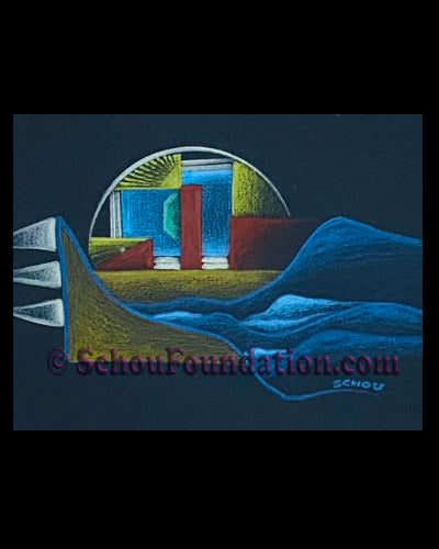 This beautiful, complex original features Prismacolor wax pencil on heavy-tooth black paper, part of the Black Paper Series. Created by San Francisco artist John Schou, this artwork is signed and dated 12/1966.