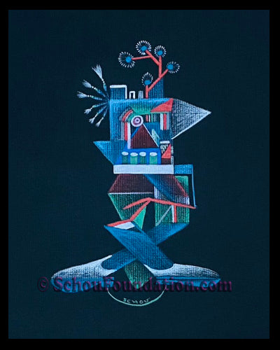 This elegant, complicated original features Prismacolor wax pencil on heavy-tooth black paper, part of the Black Paper Series. Created by San Francisco artist John Schou, this artwork is signed and dated 11/1966.