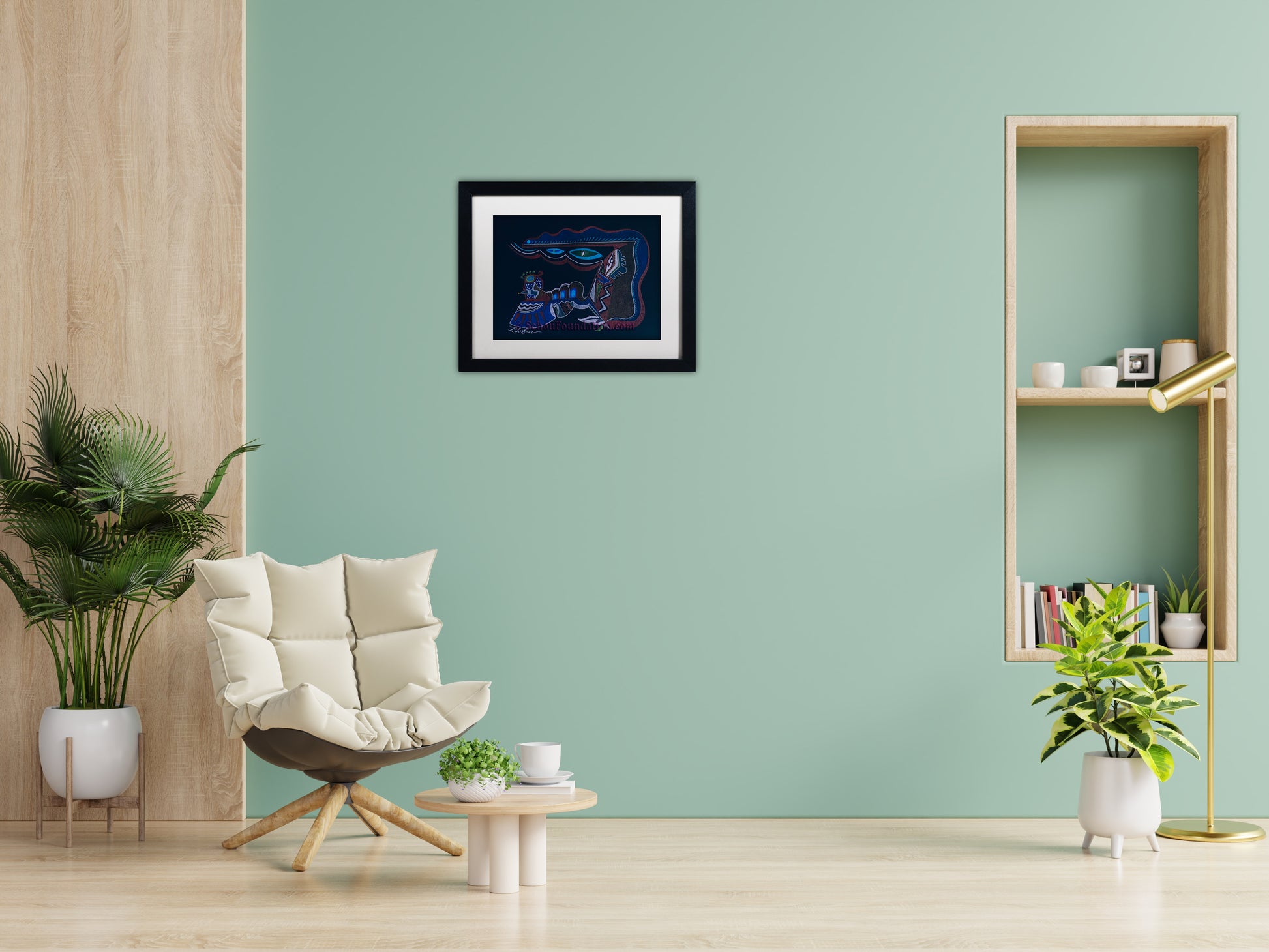 This beautiful original features Prismacolor wax pencil on heavy-tooth black paper, part of the Black Paper Series. Created by San Francisco artist John Schou, this artwork is signed and undated, circa 1966-1968.