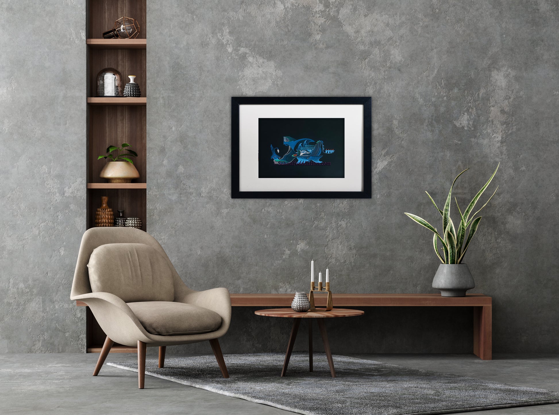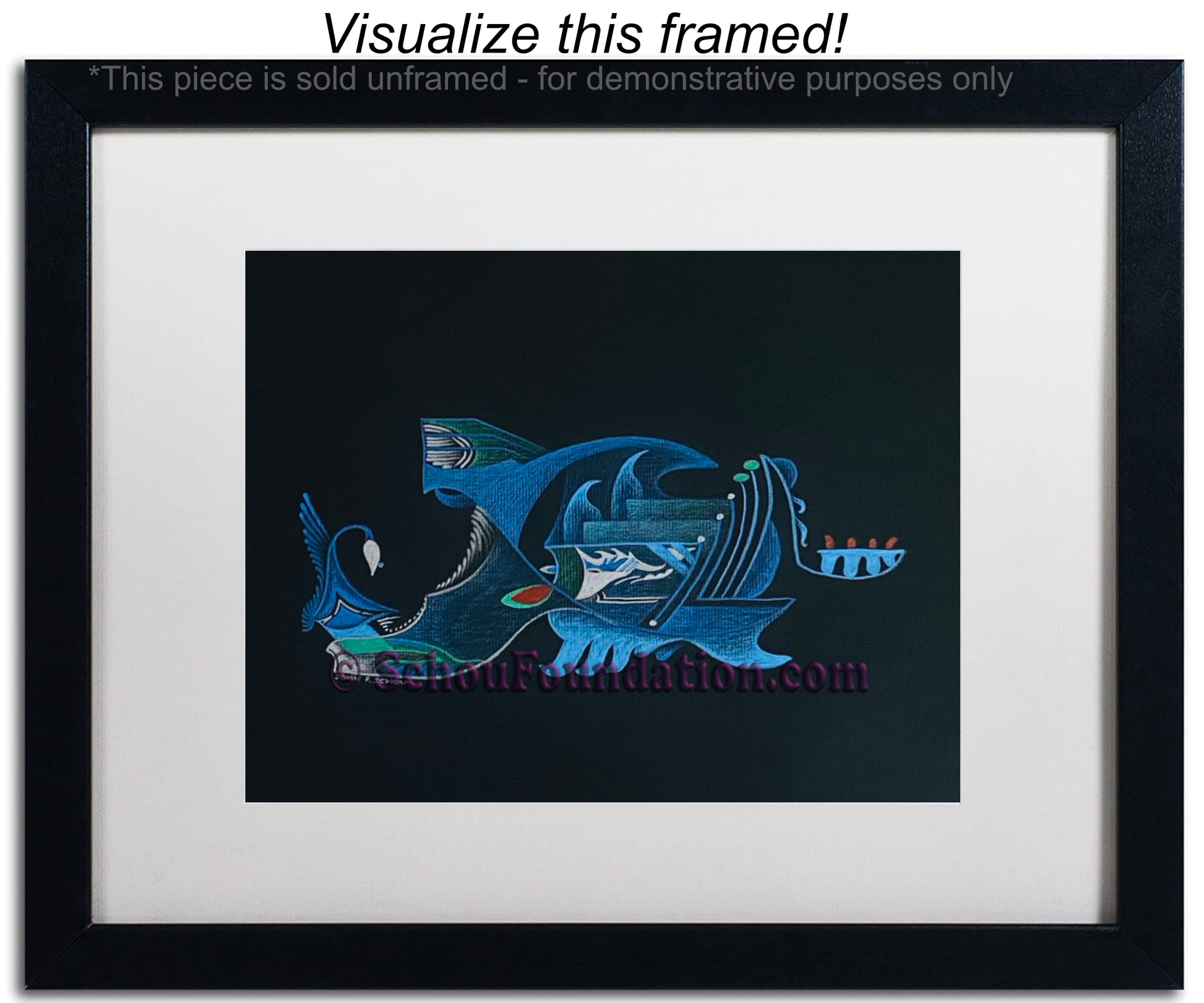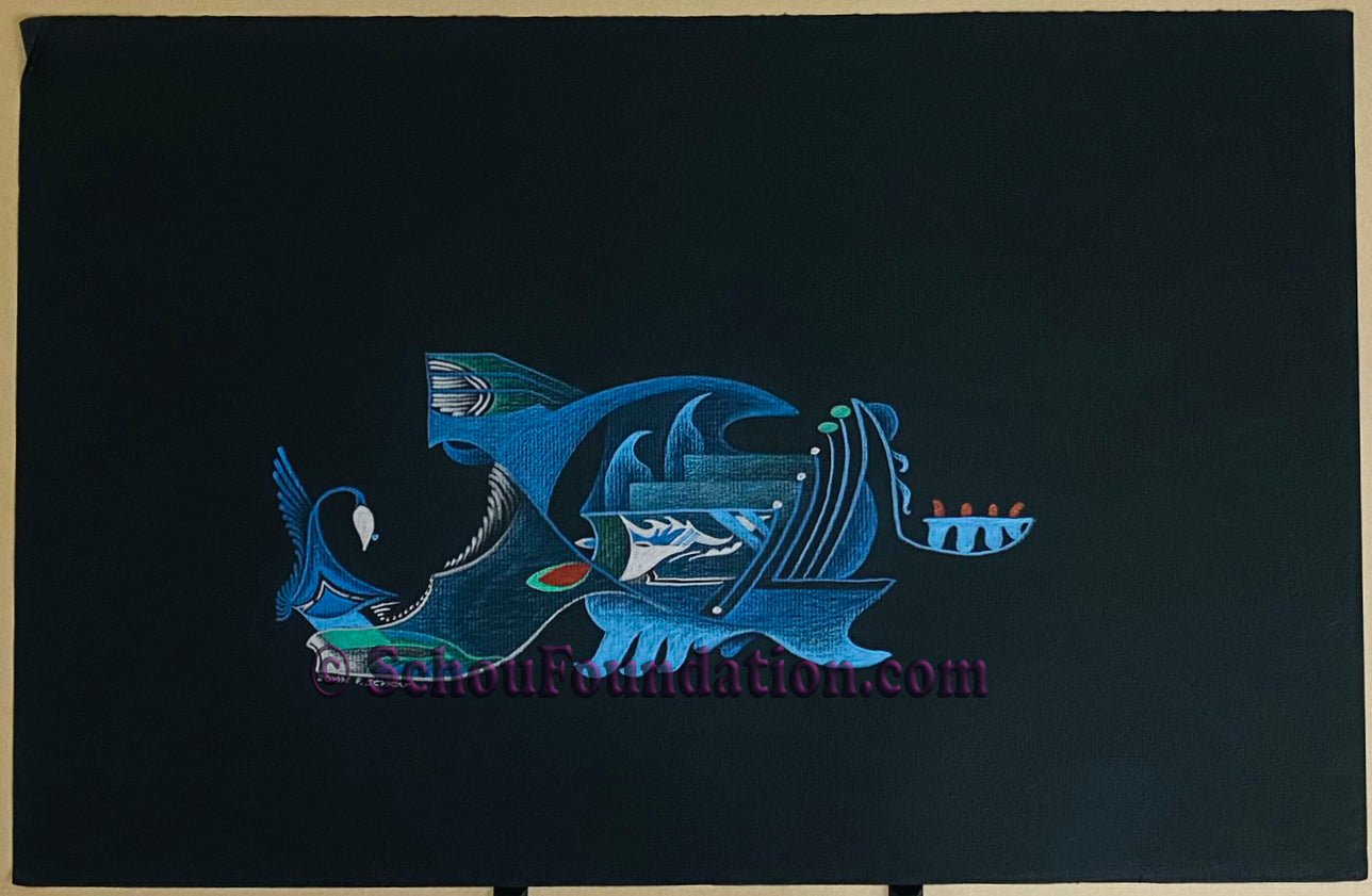 This beautiful original features Prismacolor wax pencil on heavy-tooth black paper, part of the Black Paper Series. Created by San Francisco artist John Schou, this artwork is signed and undated, circa 1966-1968.
