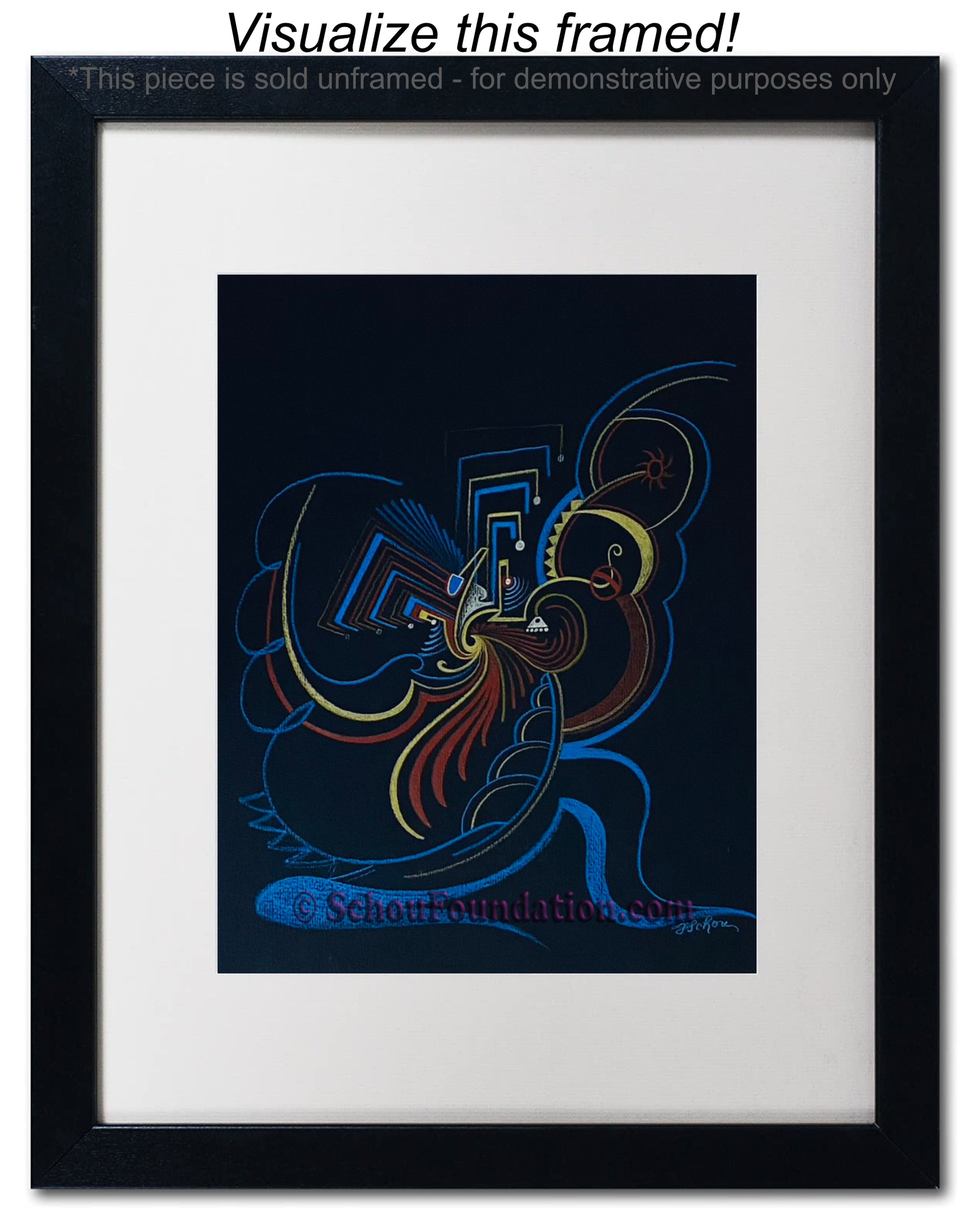This beautiful original features Prismacolor wax pencil on heavy-tooth black paper, part of the Black Paper Series. Created by San Francisco artist John Schou, this artwork is signed and undated, circa 1966-1968.