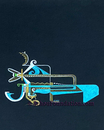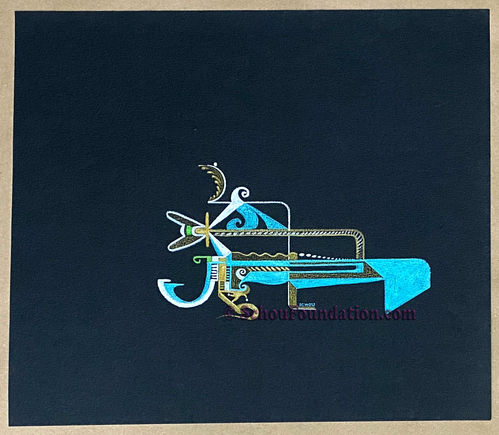 Complex vignette was created with Prismacolor wax pencil on heavy-toothed black paper; part of the Black Paper Series by San Francisco artist John Schou. Piece is signed and undated, circa 1967-1971.