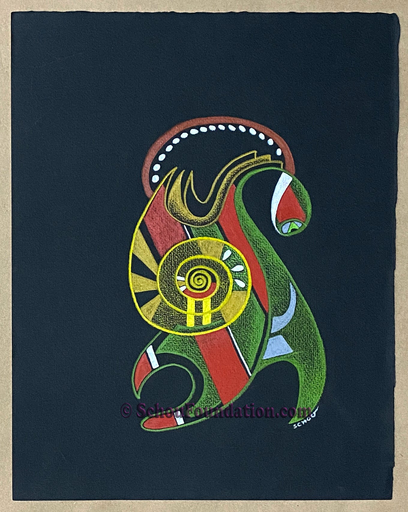 Moderately complex vignette was created with Prismacolor wax pencil on heavy-toothed black paper; part of the Black Paper Series by San Francisco artist John Schou. Piece is signed and undated, circa 1967-1971.