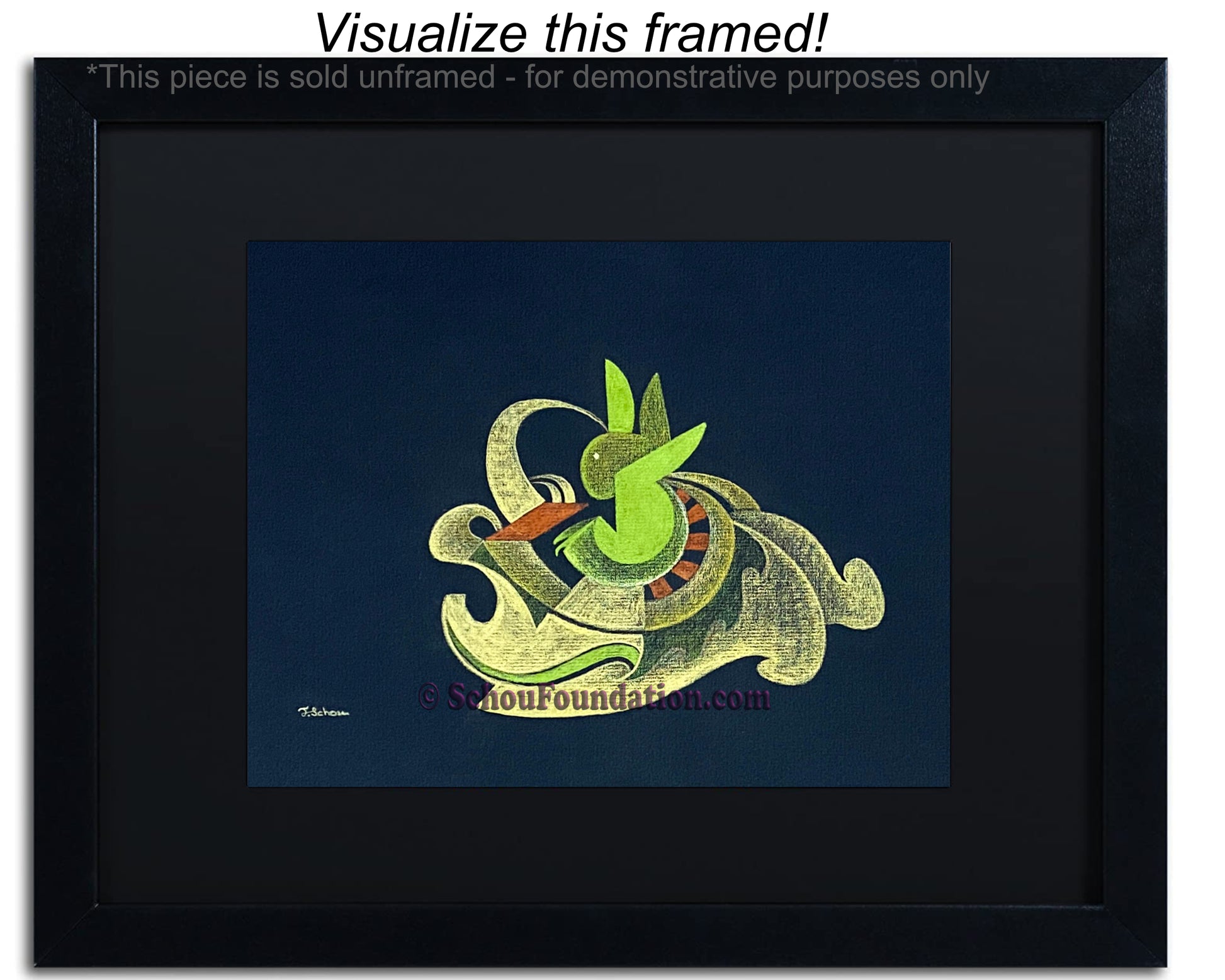 Complex vignette was created with Prismacolor wax pencil on heavy-toothed black paper; part of the Black Paper Series by San Francisco artist John Schou. Piece is signed and undated, circa 1967-1971.