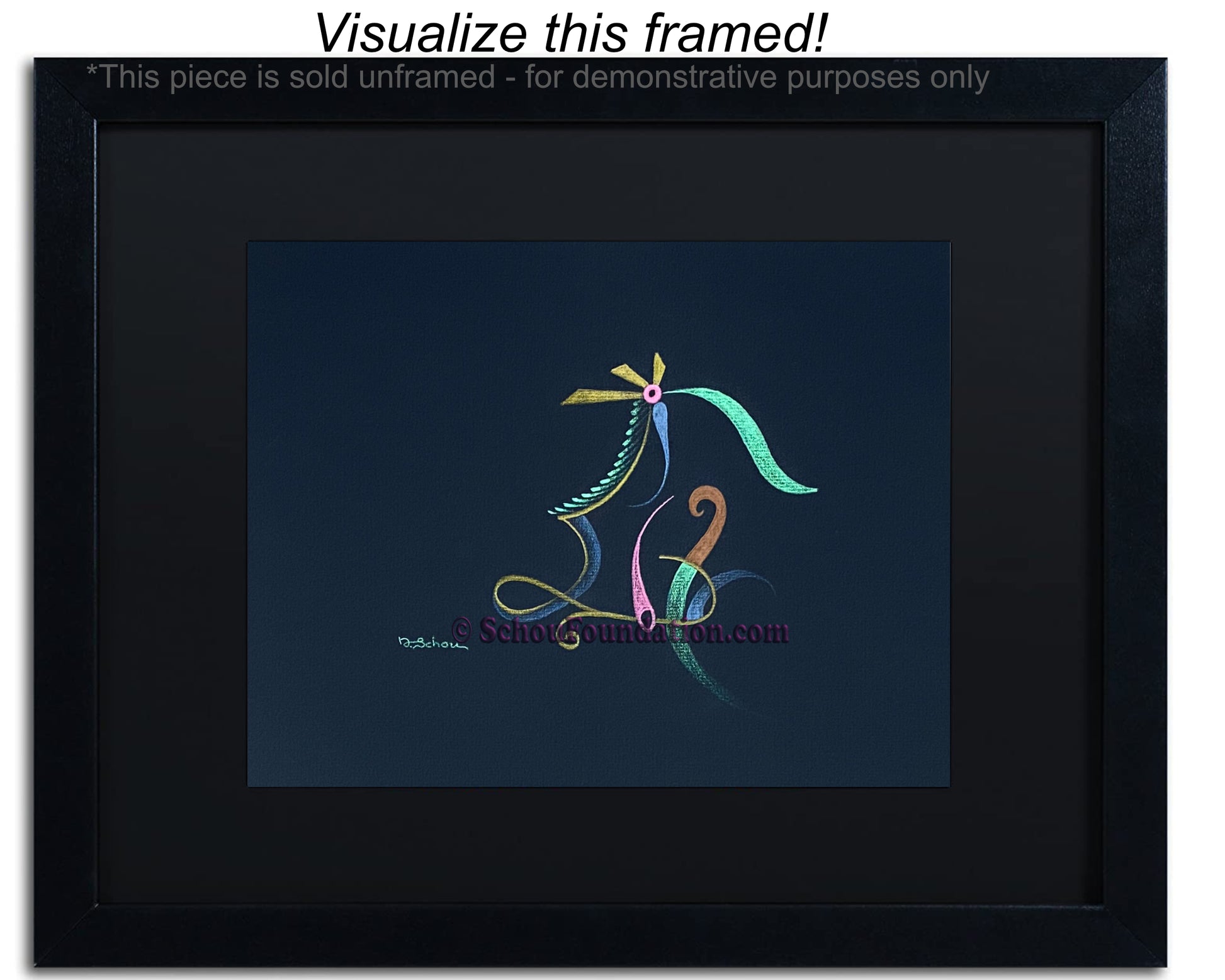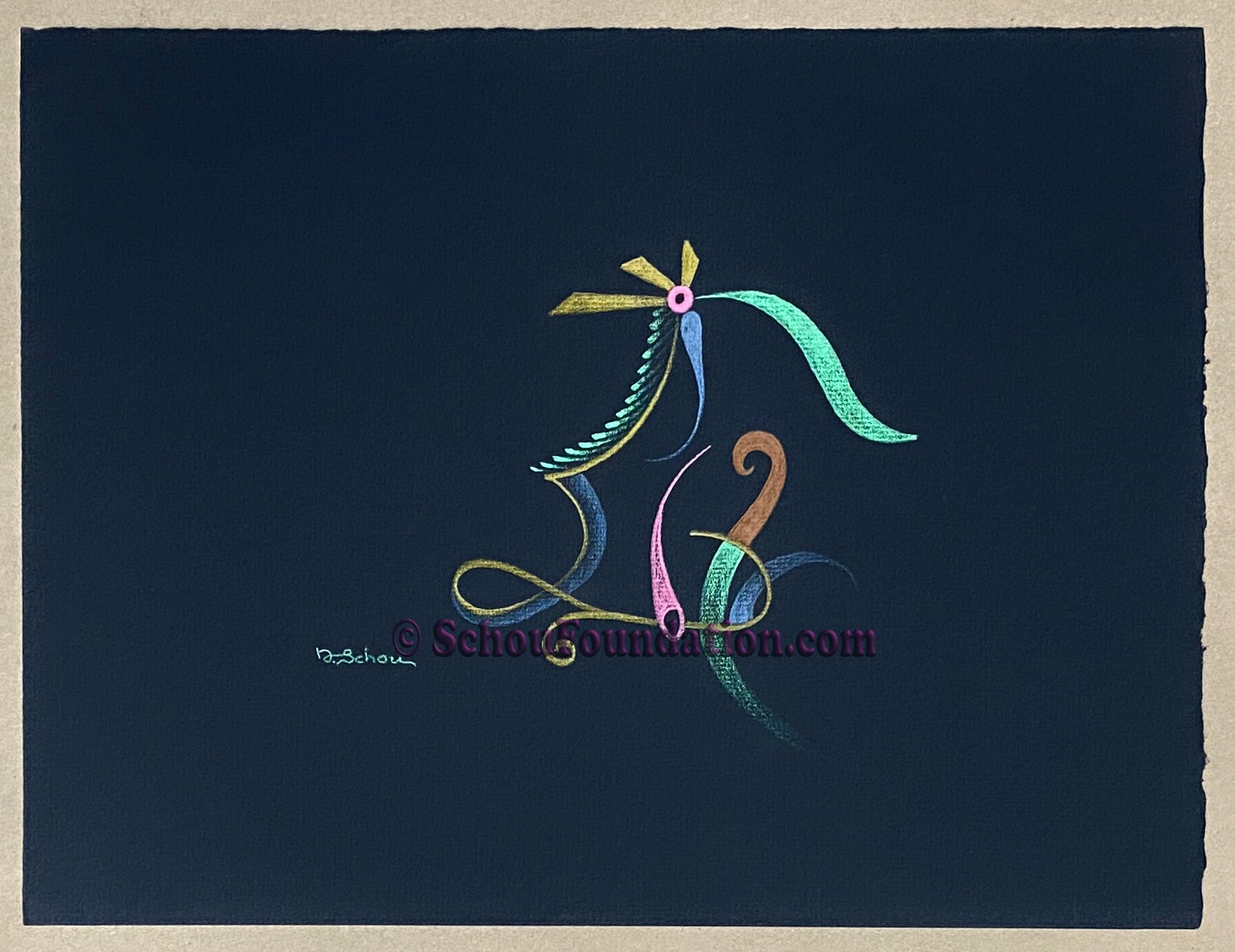 Simple and elegant vignette created with Prismacolor wax pencil on heavy-toothed black paper; part of the Black Paper Series by San Francisco artist John Schou. Piece is signed and undated, circa 1967-1971.