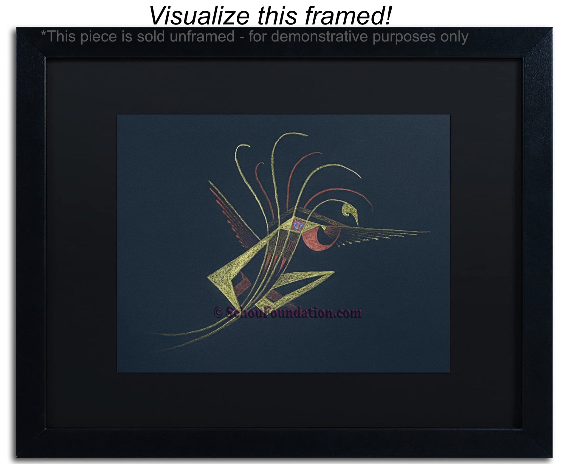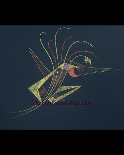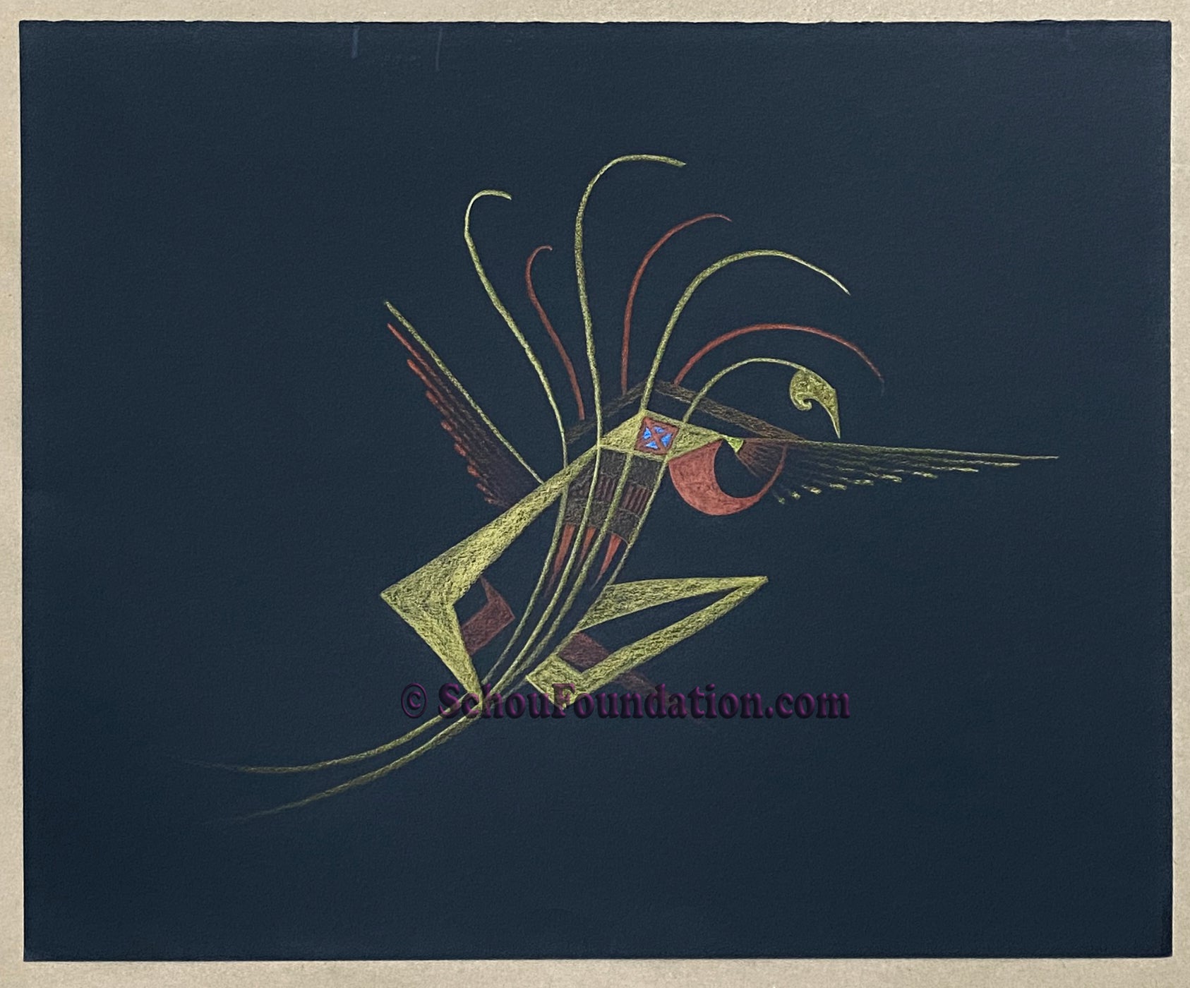 Simple and elegant abstract designed with Prismacolor wax pencil on black paper; part of the Black Paper Series by John Schou. Piece is unsigned and undated, estimated circa 1967-1971.