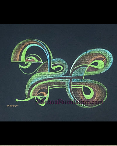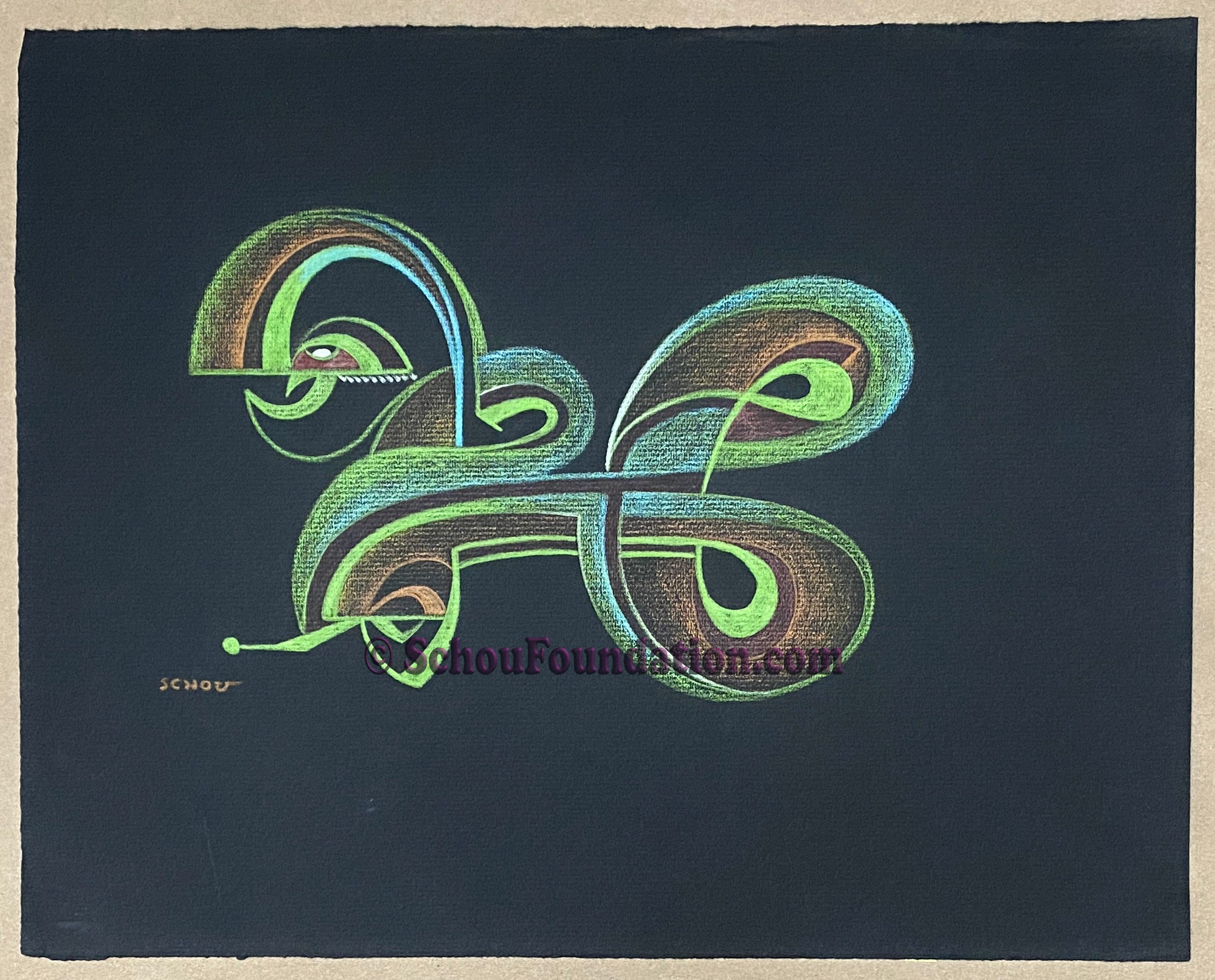 Complex vignette was created with Prismacolor wax pencil on heavy-toothed black paper; part of the Black Paper Series by San Francisco artist John Schou. Piece is signed and undated, circa 1967-1971.