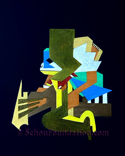 This complex abstract was designed with Prismacolor wax pencil on black heavy tooth paper - part of the Black Paper Series. Created by San Francisco artist John Schou, this piece is signed and dated, 5/1967.