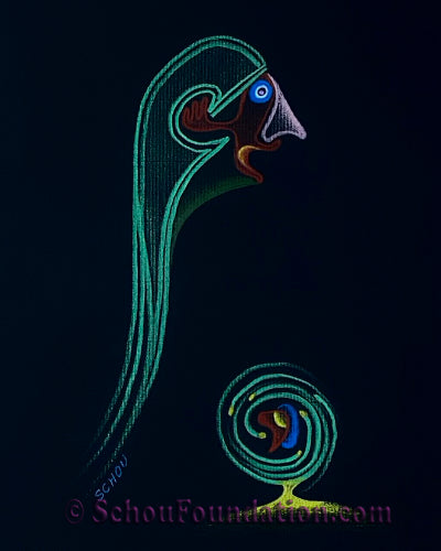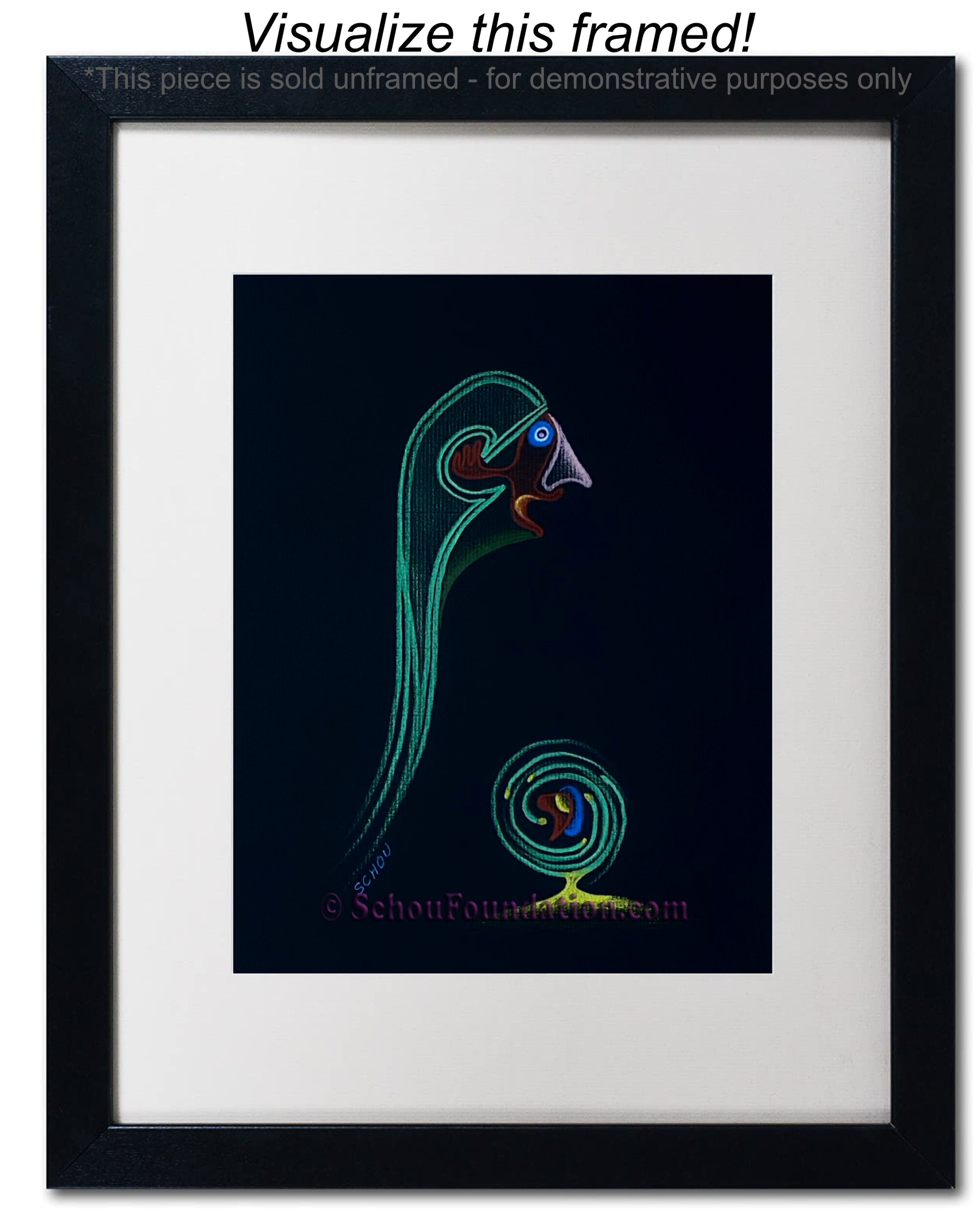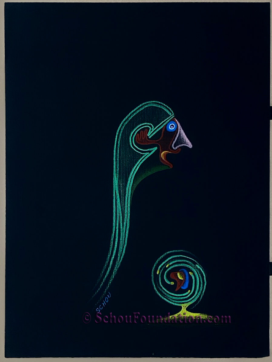 This simple piece features Prismacolor wax pencil on black heavy tooth paper - part of the Black Paper Series. Created by San Francisco artist John Schou, this piece is signed and undated, circa 1966-1968.