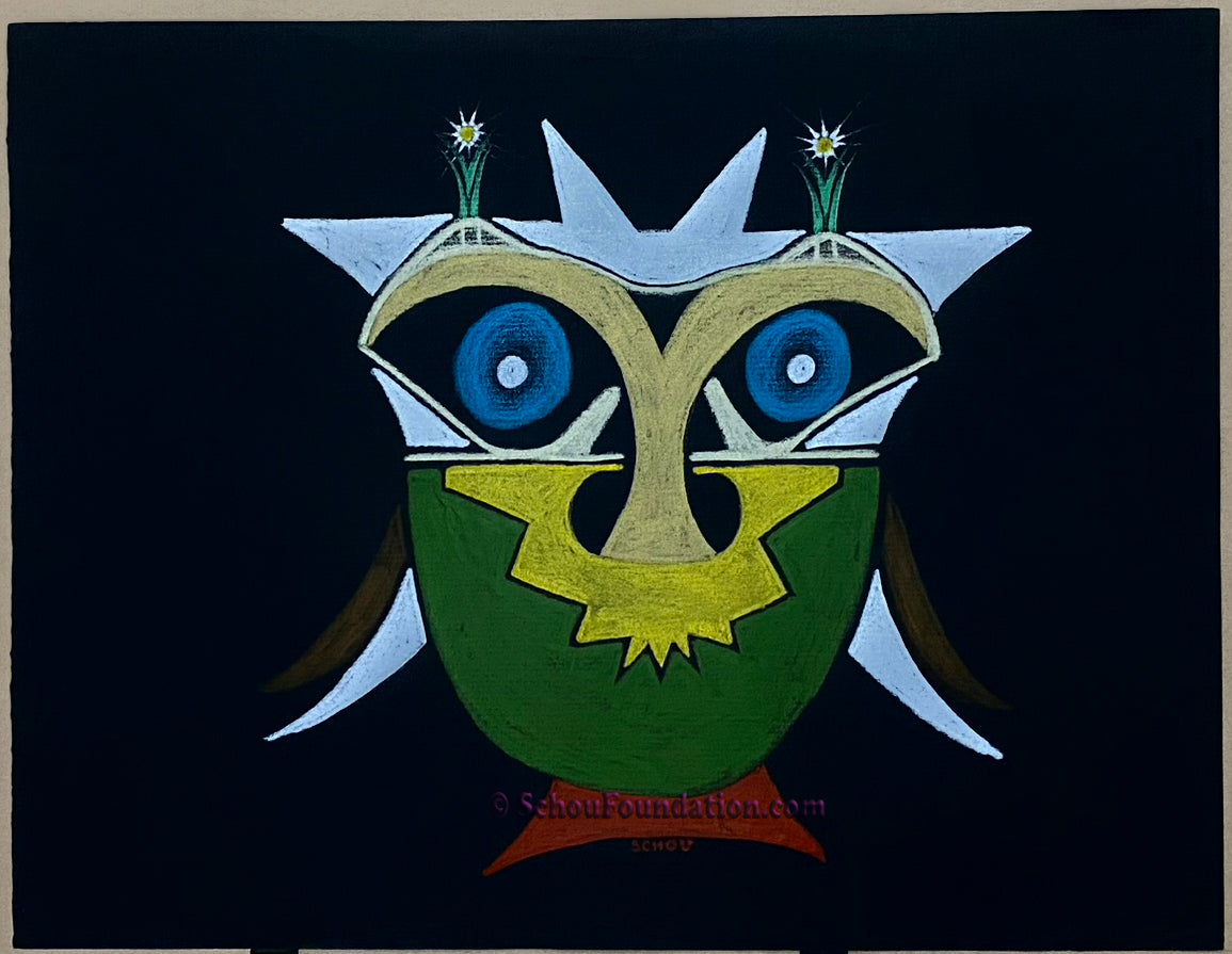 This elegant piece features Prismacolor wax pencil on black heavy tooth paper - part of the Black Paper Series. Created by San Francisco artist John Schou, this piece is signed and undated, circa 1966-1968.