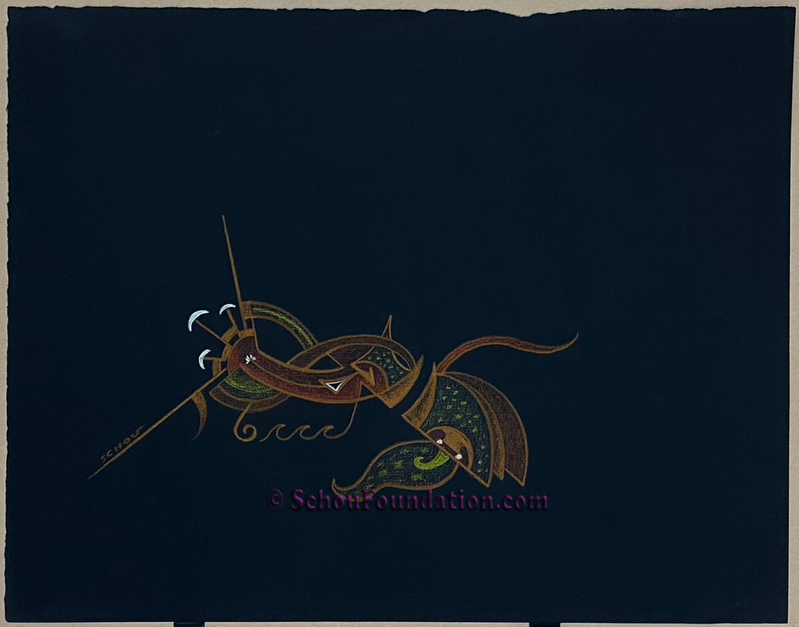 This simple vignette features Prismacolor wax pencil on black heavy tooth paper - part of the Black Paper Series. Created by San Francisco artist John Schou, this piece is signed and undated, circa 1966-1968.