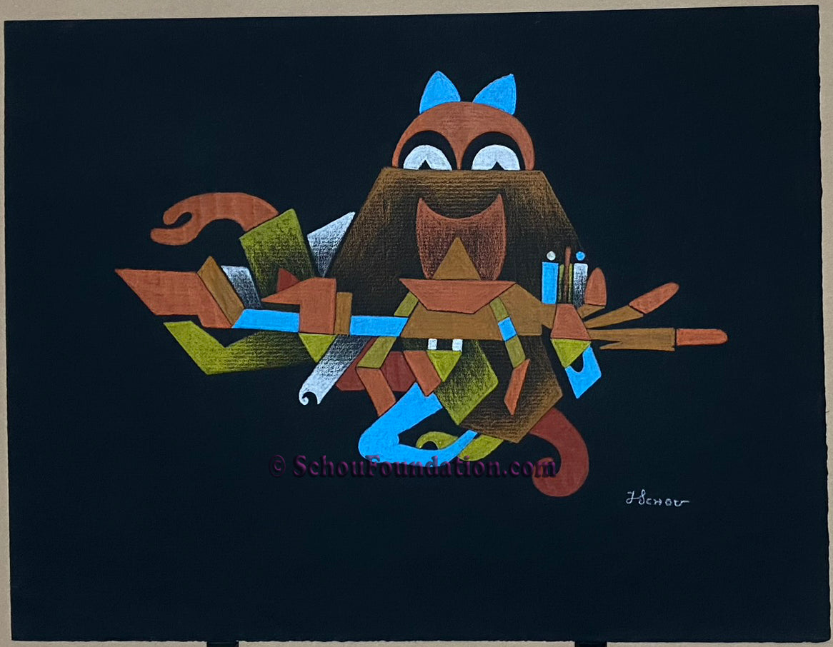 This elegant, complex abstract features Prismacolor wax pencil on black heavy tooth paper - part of the Black Paper Series. Created by San Francisco artist John Schou, this piece is signed and dated 5/20/1967.