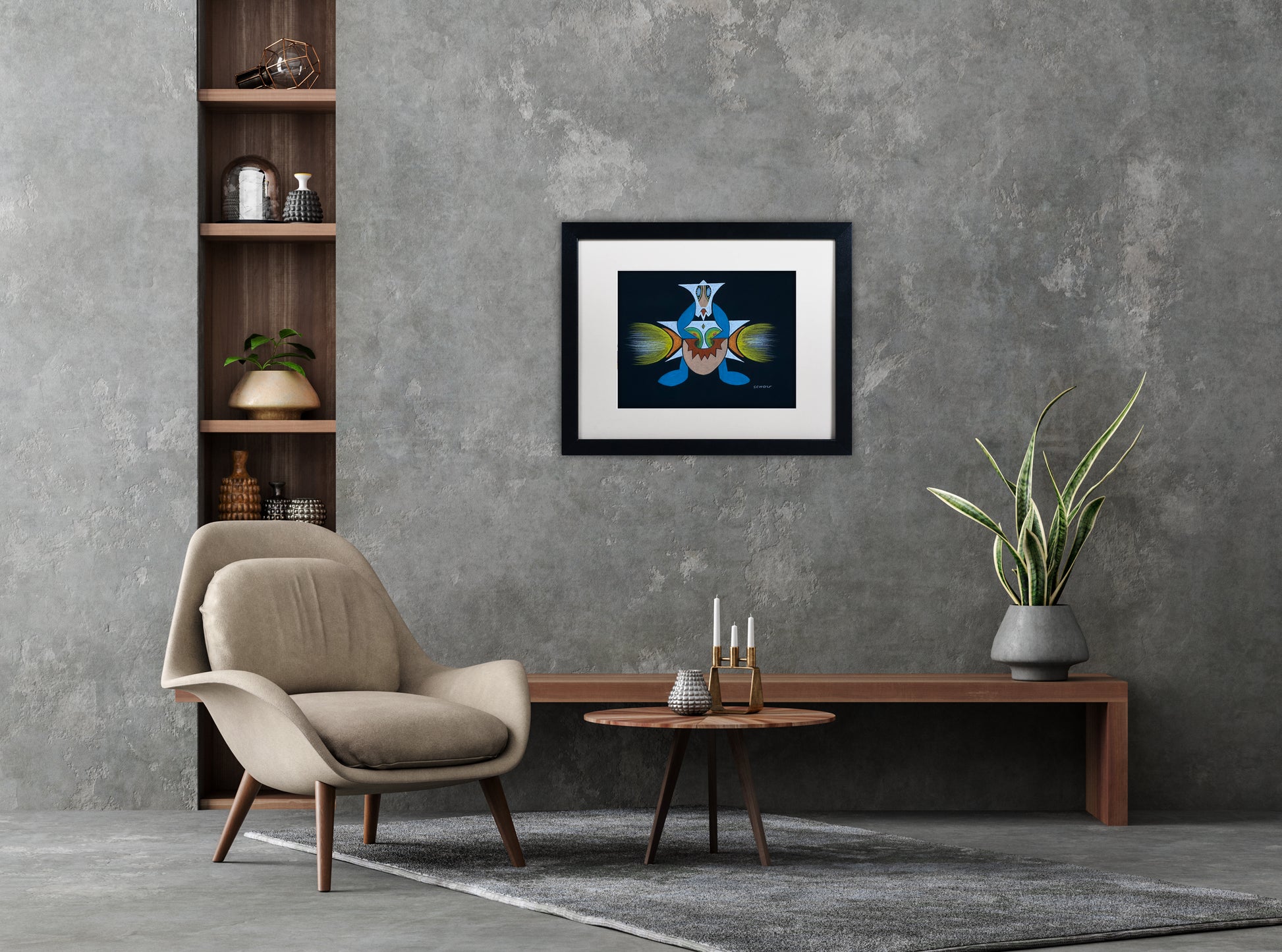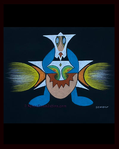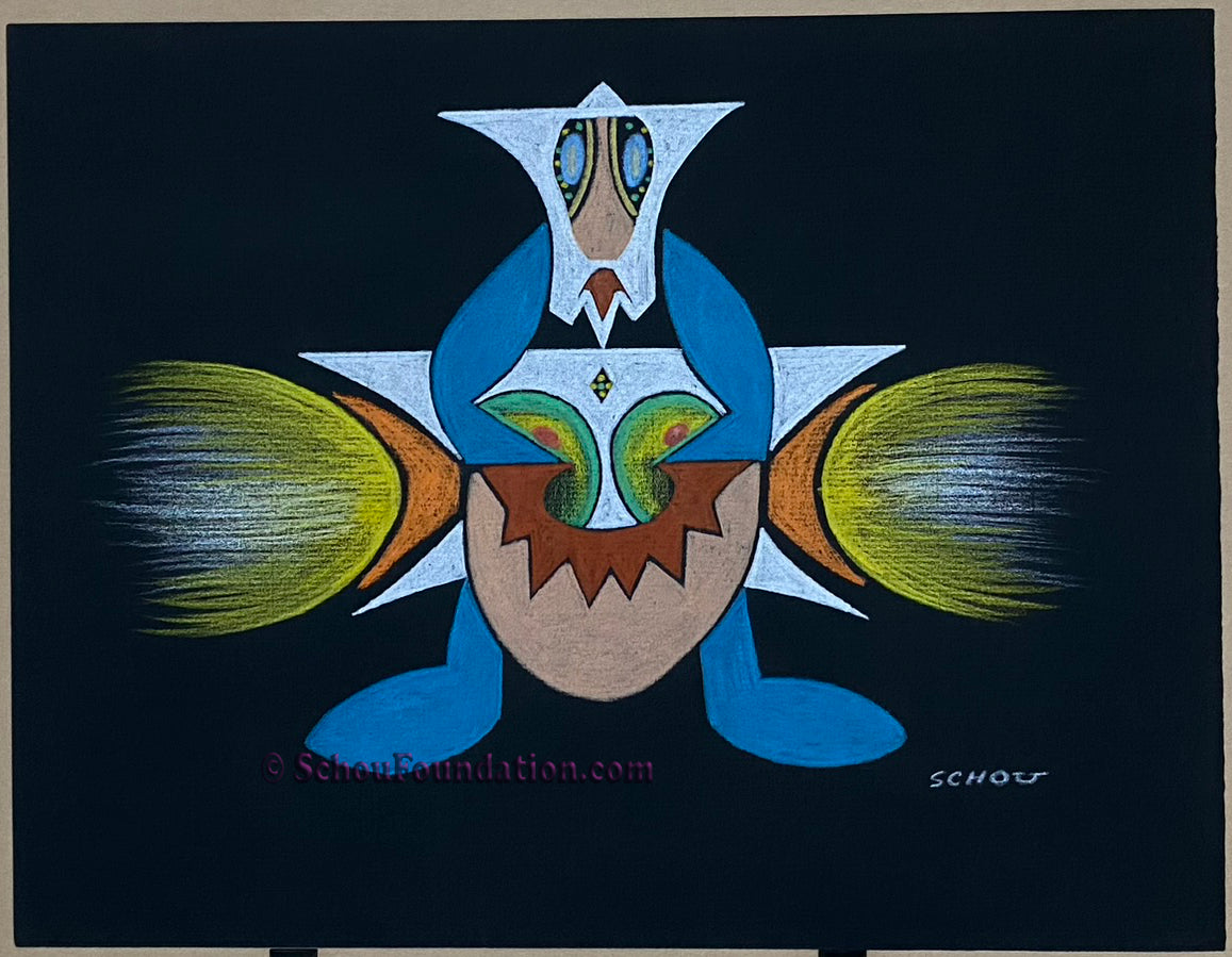 This elegant, complex abstract features Prismacolor wax pencil on black heavy tooth paper - part of the Black Paper Series. Created by San Francisco artist John Schou, this piece is signed and dated 9/1966.