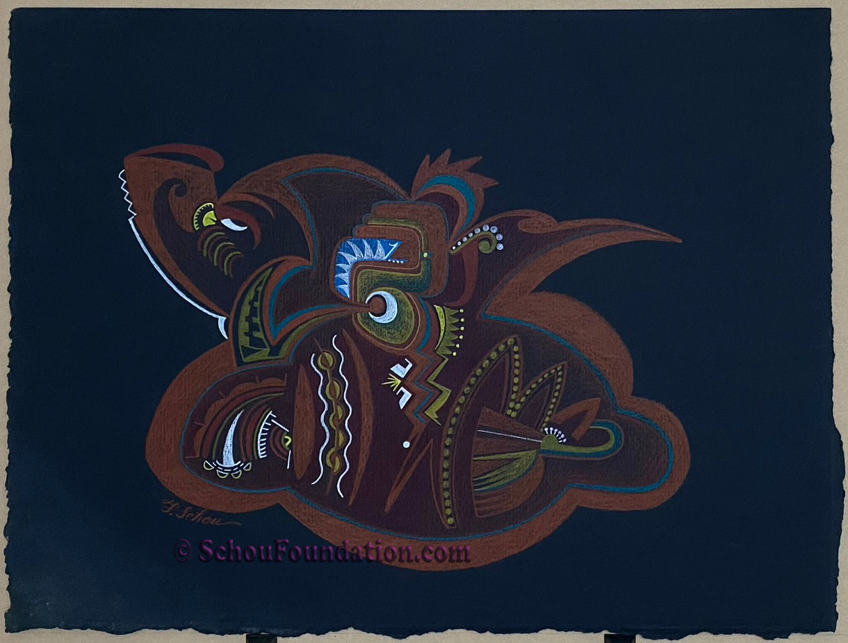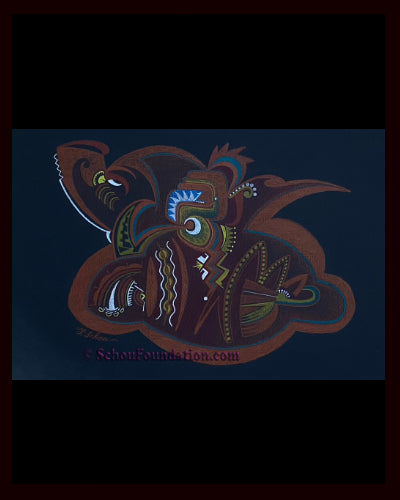 This moderately complex abstract features Prismacolor wax pencil on black heavy tooth paper - part of the Black Paper Series. Created by San Francisco artist John Schou, this piece is signed and undated, circa 1966-1968.